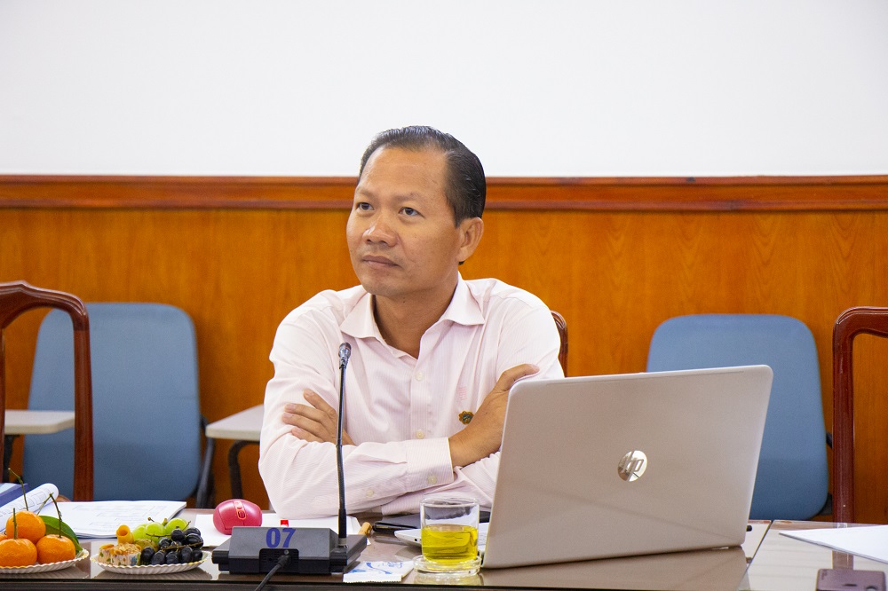TS.Cao Việt Hiếu - Chủ nhiệm đề tài nghiên cứu“Nghiên cứu xây dựng và phát triển sản phẩm du lịch tại Bình Phước” phát biểu trước Hội đồng đánh giá.