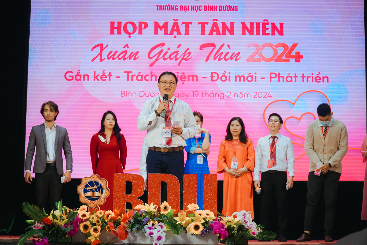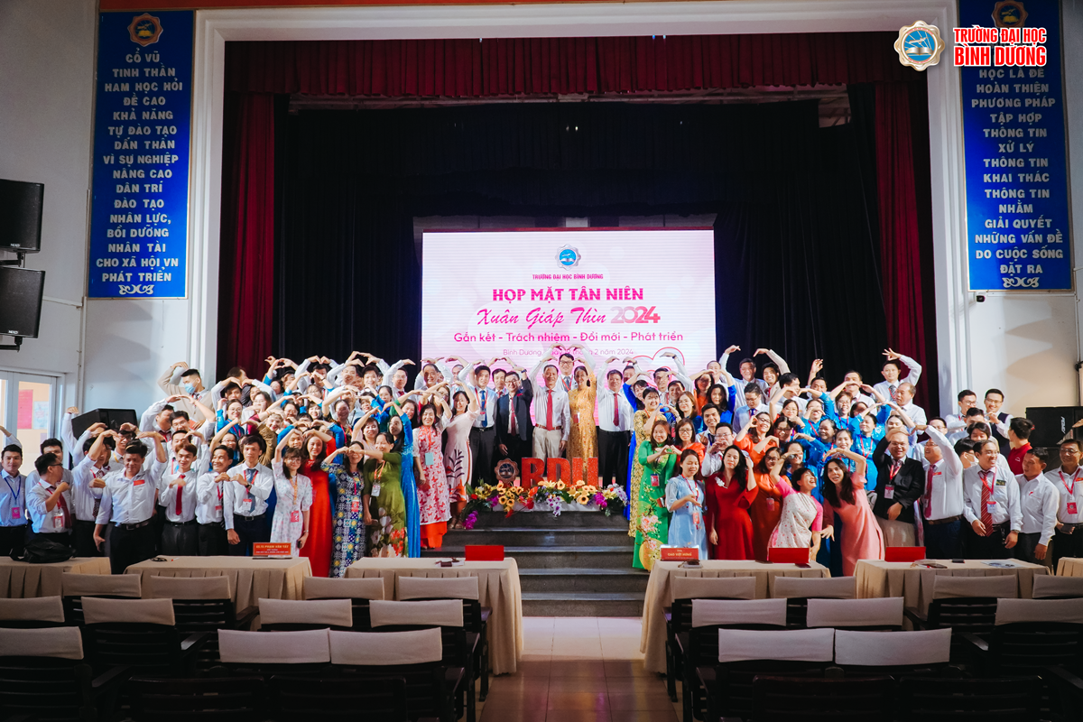 Sáng 19/2/2024, Trường Đại học Bình Dương (BDU) tổ chức chương trình họp mặt tân niên Giáp Thìn 2024, sự kiện đánh dấu một hành trình mới đầy năng lượng cùng với quyết tâm “Gắn kết – Trách nhiệm - Đổi mới – Phát triển”.