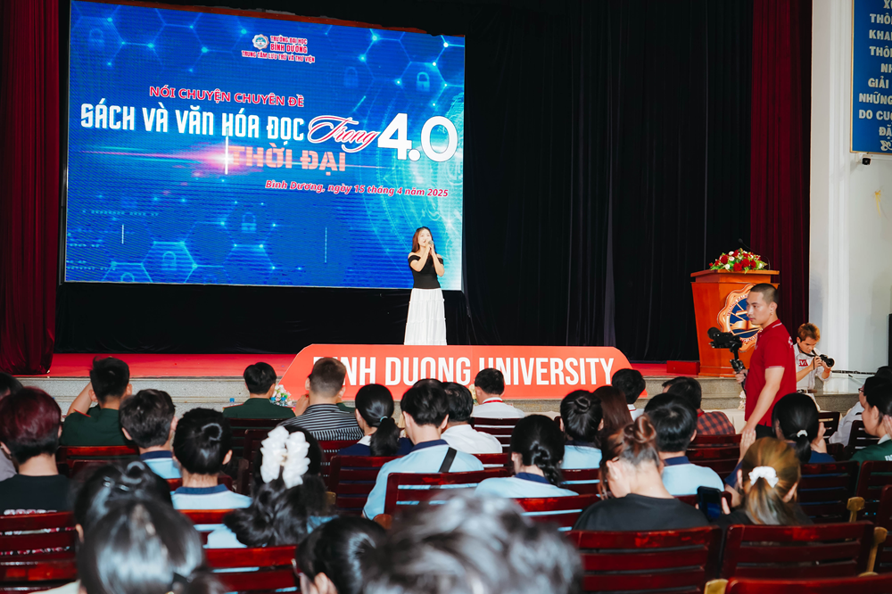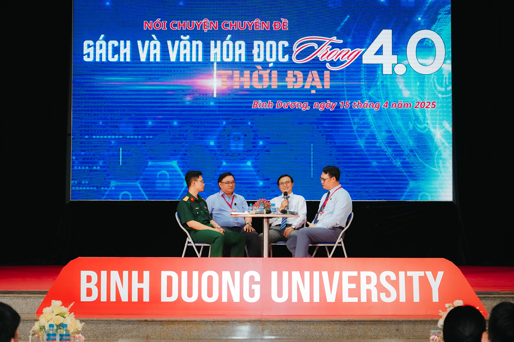 Chiều ngày 15/4/2025, Trung tâm Lưu trữ và Thư viện Trường Đại học Bình Dương tổ chức buổi nói chuyện chuyên đề: “Sách và văn hóa đọc trong thời đại 4.0” với sự tham gia của đông đảo cán bộ giảng viên, sinh viên, và những người yêu sách. Chương trình là một trong những hoạt động tiêu biểu hưởng ứng Ngày Sách và Văn hóa đọc Việt Nam năm 2025.
