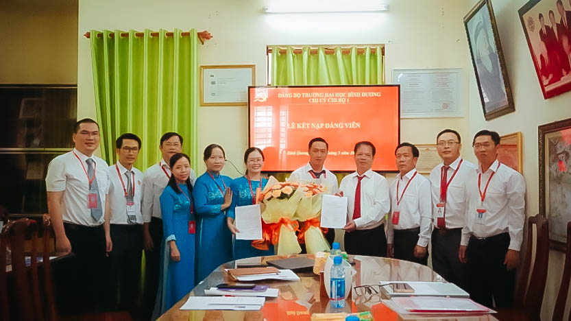 Chiều ngày 13/5, tại Văn phòng Hội đồng Trường Đại học Bình Dương, Chi bộ I tổ chức Lễ kết nạp đảng viên mới cho hai quần chúng Bùi Thị Hường và Trần Thanh Cơ.