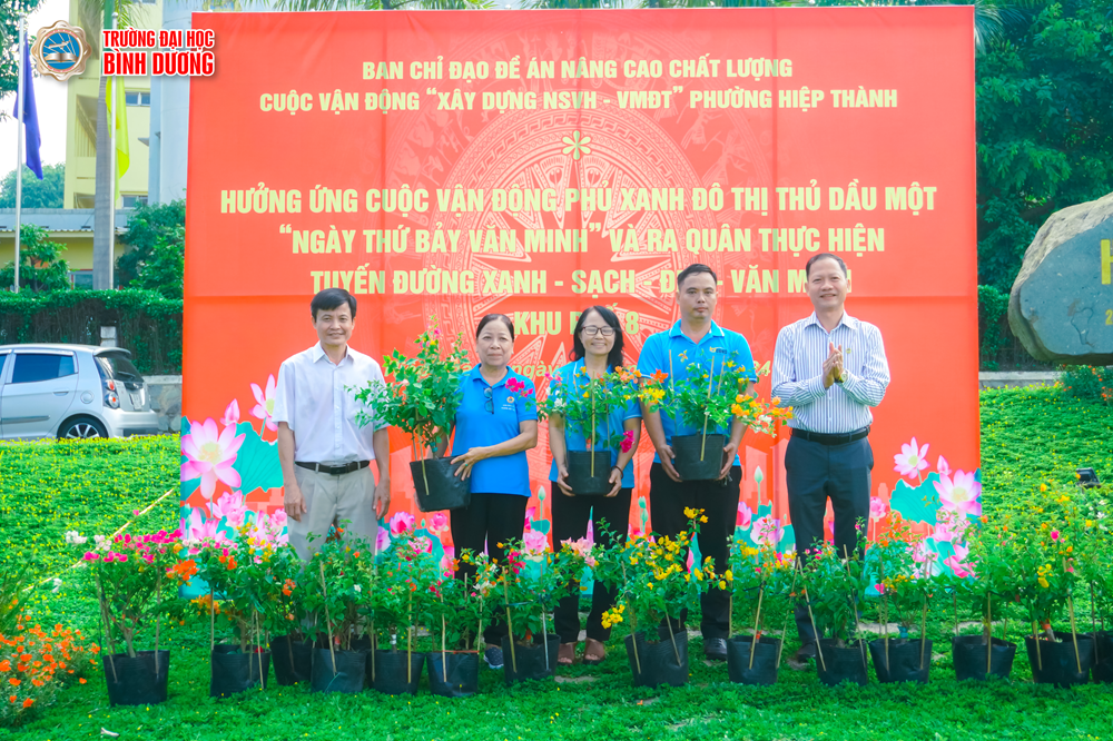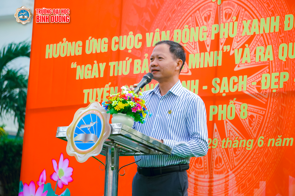 Phát biểu tại chương trình, GS.TS Cao Việt Hiếu - Hiệu trưởng Trường Đại học Bình Dương đã nhấn mạnh tầm quan trọng của việc tham gia Cuộc vận động phủ xanh đô thị Thủ Dầu Một và hưởng ứng "Ngày thứ Bảy văn minh" của tập thể Cán bộ, Công Nhân viên và sinh viên. Đồng thời cho biết, đây là hoạt động ý nghĩa nhằm hưởng ứng lời kêu gọi của Thủ tướng Chính phủ, Bộ Tài nguyên và Môi trường về trồng cây phủ xanh đất nước nói chung và thành phố Thủ Dầu Một nói riêng.