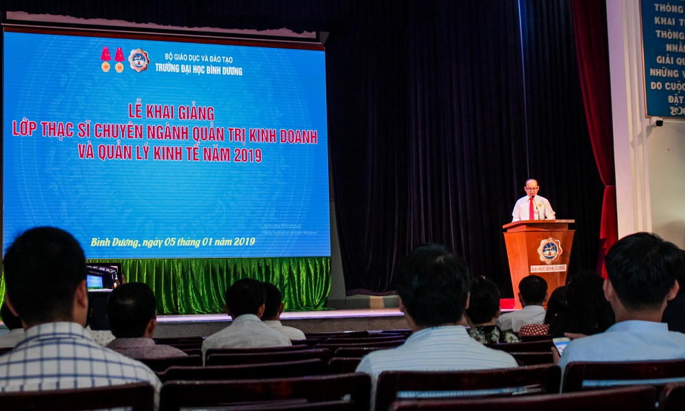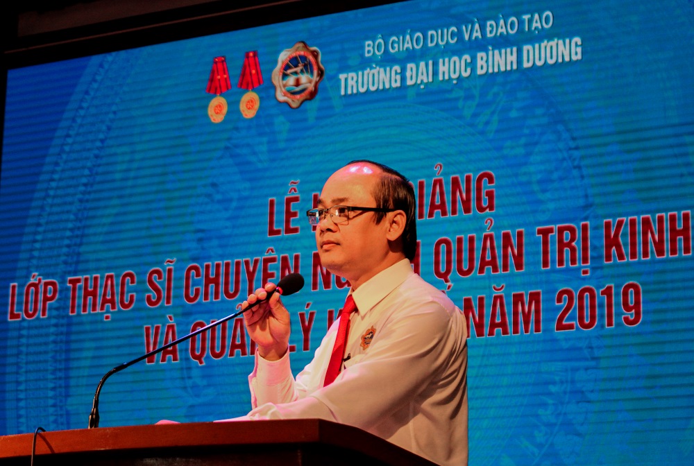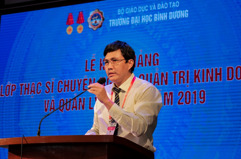 Phát biểu khai mạc buổi lễ, TS. Võ Văn Việt – Phó Trưởng phòng Đào tạo Trường Đại học Bình Dương đã đại diện BGH Nhà trường gửi lời chúc mừng đến toàn thể các học viên đã trúng tuyển vào lớp Thạc sỹ Quản trị kinh doanh, Quản lí kinh tế. TS. Võ Văn Việt hy vọng các học viên hãy ra sức phấn đấu học tập, trau dồi và rèn luyện bản thân để đạt được kết quả cao, từ đó góp phần vào công cuộc xây dựng và phát triển đất nước trong thời đại công nghiệp hóa – hiện đại hóa như hiện nay.