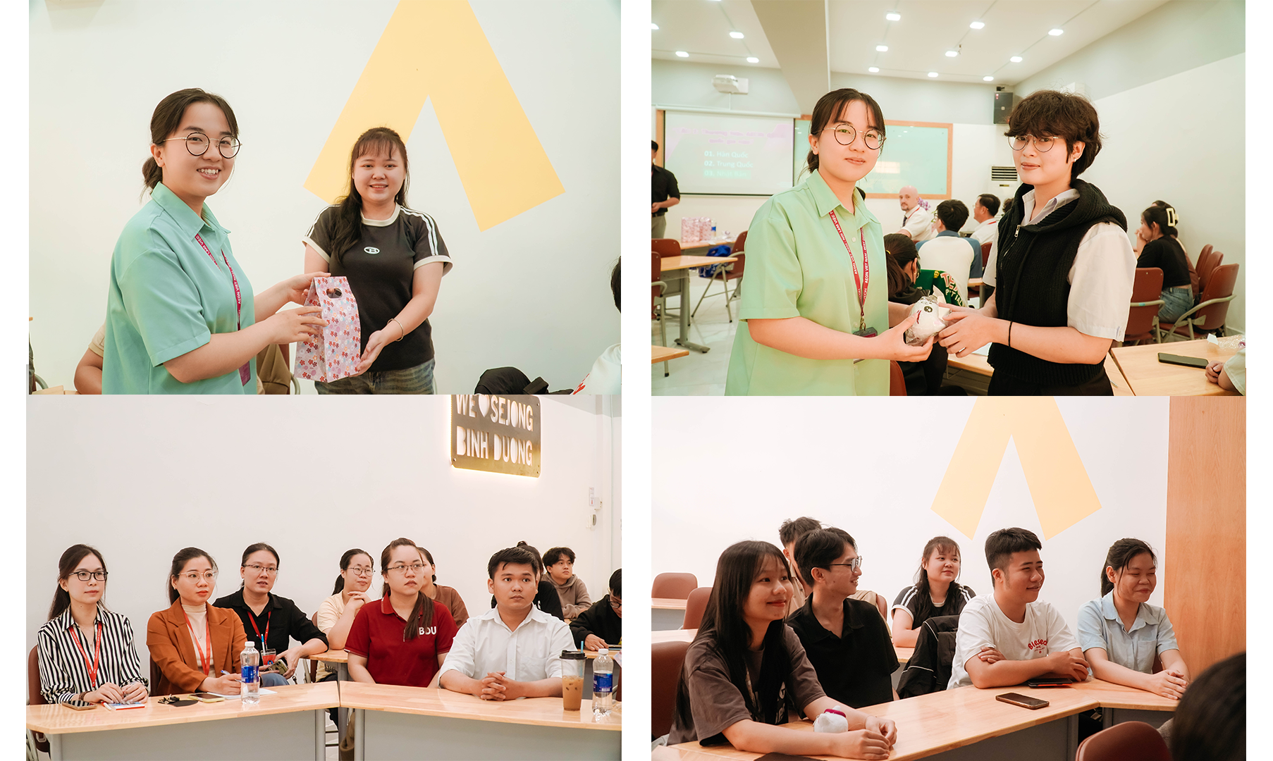 Tham dự chương trình, các bạn sinh viên đã tự tin đặt nhiều câu hỏi liên quan đến quy trình tuyển dụng, yêu cầu kỹ năng và cơ hội thăng tiến tại AEON. Đại diện AEON đã tận tình giải đáp, đồng thời chia sẻ những kinh nghiệm thực tế giúp sinh viên chuẩn bị tốt hơn cho hành trình tìm việc. Không chỉ cung cấp thông tin hữu ích, buổi seminar còn trở nên sôi động hơn với minigame đố vui và những phần quà hấp dẫn dành cho các bạn sinh viên tham gia.