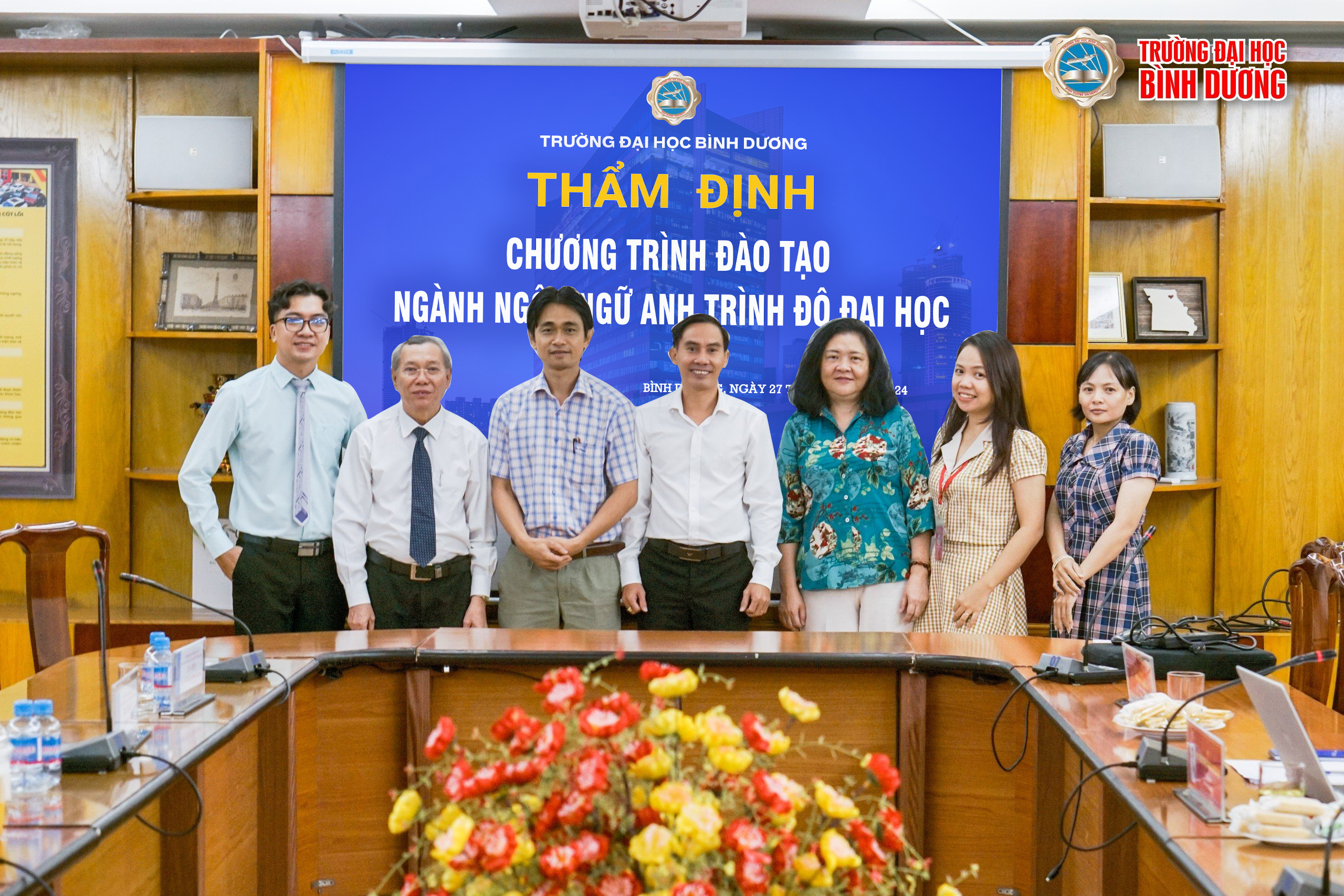 Ngày 27/7, Trường Đại học Bình Dương tổ chức hội đồng thẩm định chương trình đào tạo trình độ đại học ngành Ngôn ngữ Anh. Đến tham dự về phía Ban Giám hiệu Nhà trường có TS. Đỗ Đoan Trang – Phó Hiệu trưởng thường trực. Hội đồng thẩm định có 5 thành viên gồm: TS. Nguyễn Thị Thanh Tâm - Chủ tịch; TS. Hồ Văn Hận - Phản biện 1; TS. Nguyễn Thanh Dương - Phản biện 2; TS. Nguyễn Minh Trang - Uỷ viên và ThS. Nguyễn Phương Duy - Uỷ viên/ Thư ký.