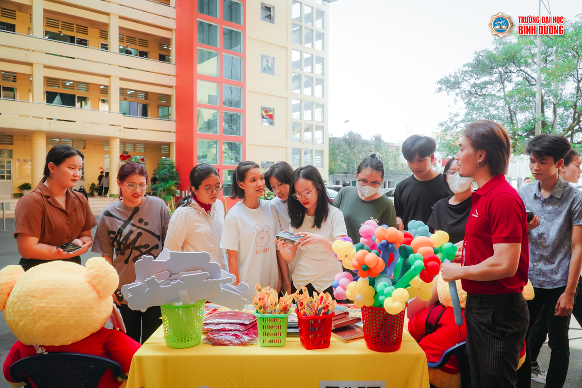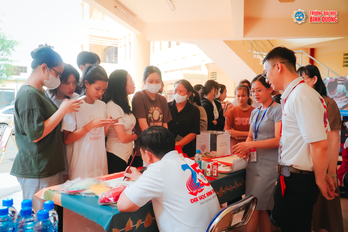 Tham dự buổi triển lãm, còn có không gian trưng bày các sản phẩm quảng bá tuyển sinh của trường, không gian sách của thư viện. Đặc biệt, chương trình còn diễn ra hoạt động viết chữ thư pháp tặng người tham dự khiến nhiều sinh viên và học sinh thích thú.